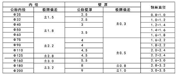 1、采用钢丝骨架支撑,具有一定的强度和硬度,耐负压在-0.097MPa,负压力下保压100h,无吸偏和破坏,满足井下抽负压的要求。